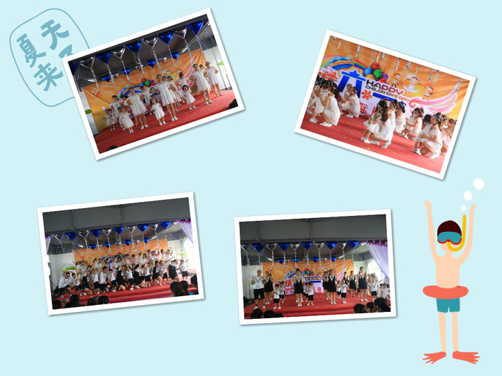 本次藝術月展示活動,孩子們在舞蹈、唱歌、情景表演、跆拳道、樂器表演等形式不同的節目中,展示了自己的風采。小班小朋友的舞蹈《愛啦啦》、《小跳蛙》、《洗洗手》、《嘚啵嘚啵嘚》等天真可愛;跆拳道班的小朋友動作整齊,神氣十足;情景劇《貓鼠之夜操》場面熱烈,節奏明快,充滿童真與童趣;小七班的寶貝和家長表演的親子舞蹈《彩虹的約定》形式新穎,場面十分溫馨……