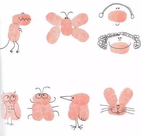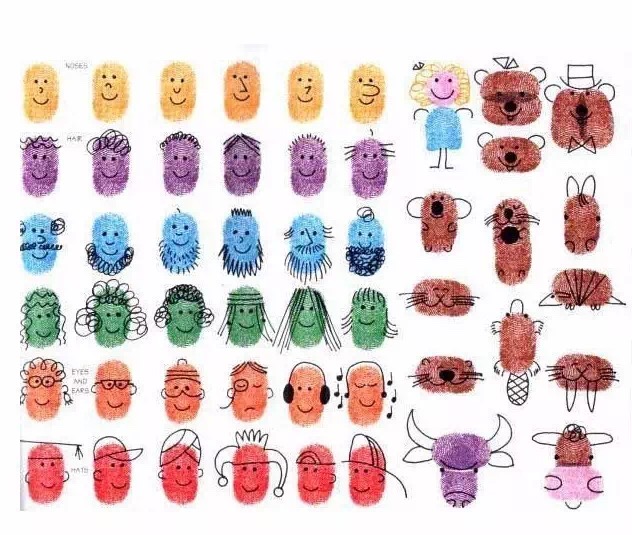 孩子的小手指輕輕一點,彩筆簡單勾勒,一幅色彩鮮艷、形象直觀的指印畫就完成啦!