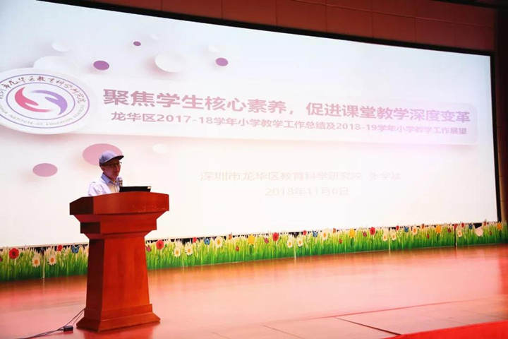 時間: 2019-01-03 作者:龍華中英文實驗學校 閱讀次數: 26332018年11月6日,深圳市龍華區“2018年小學教學工作會議”在區教科院附屬小學星辰劇場順利召開,我校卜祥林校長作為全區學校的兩名代表之一在會上作了題為《重構小班化教學,提升學生核心素養》的經驗介紹。